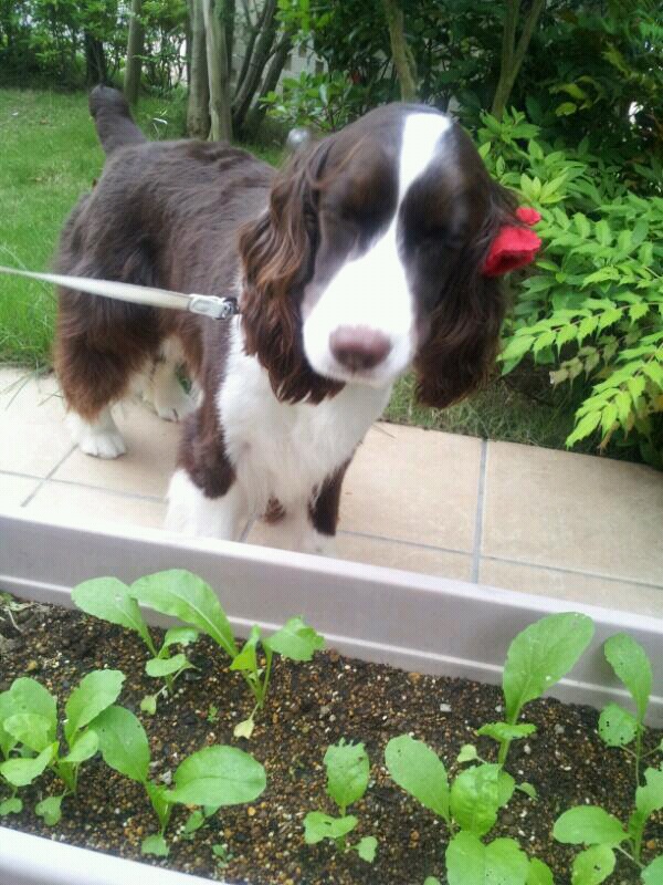 散歩の前に、庭の小松菜をチェック!!