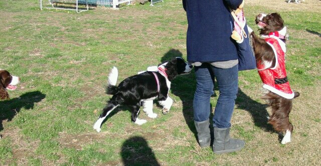 みんなお利口にオスワリして待っているのに、アシュリーは飼い主を探して動き出すから、フェンスに固定(-_-)