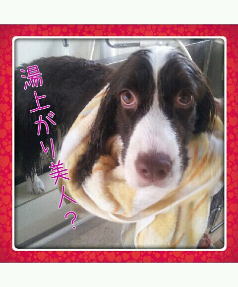 うんうん、確かに湯上がり美人! 朝早くても毛皮を着たワンコにはこの暑さは酷しいでしょうね。