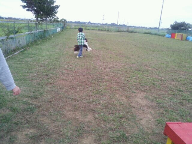 飛行犬撮影の日だったので、アジリティ用具は撤去されていて、いつもよりだだっ広い感じ。