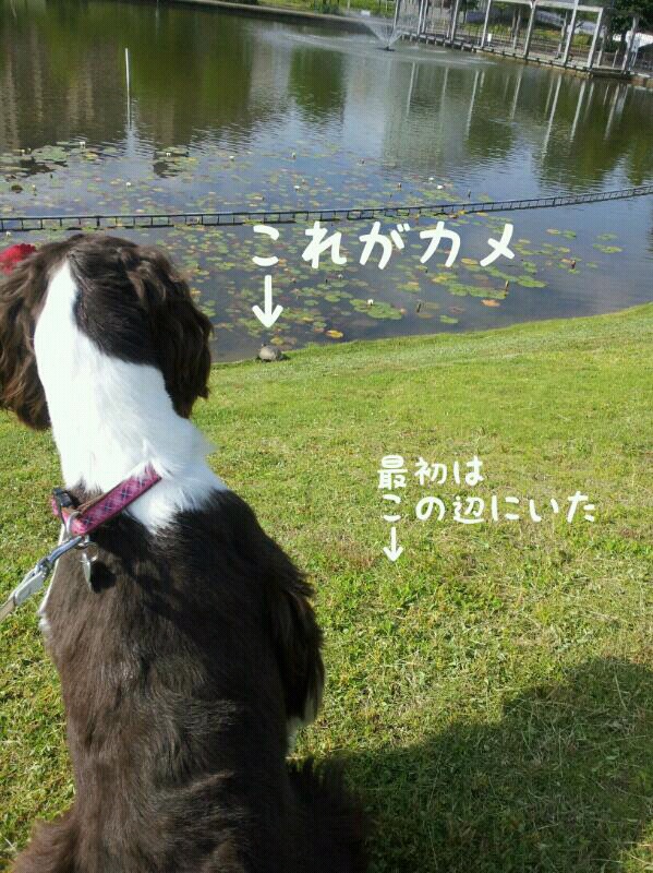 その直後にカメは池ポチャした