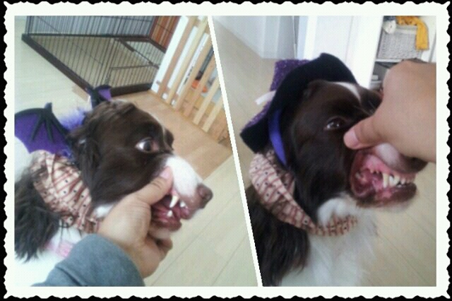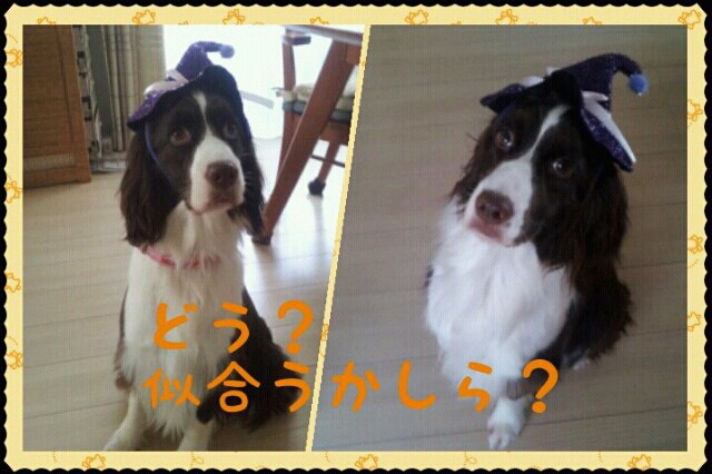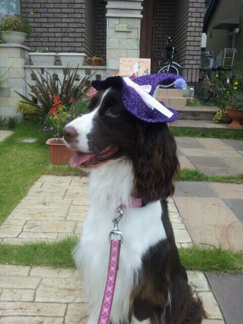 去年のコウモリ耳を着けてみましたが、カボチャさんの帽子が欲しくなったようです。