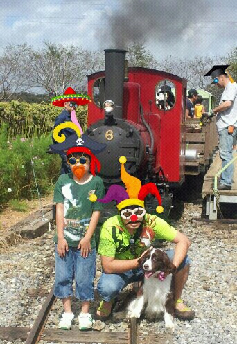 本格的なミニSLの前で記念撮影。