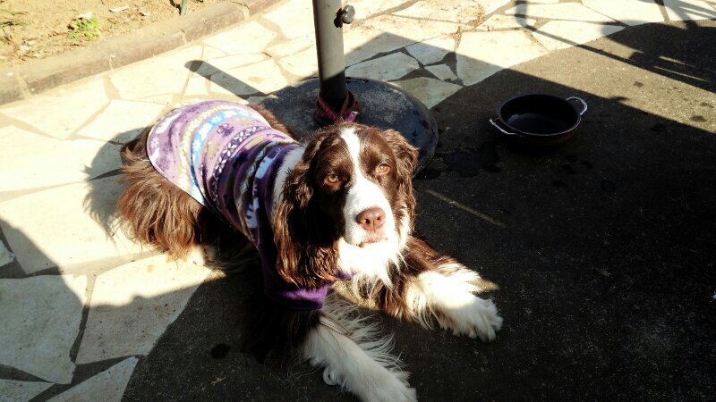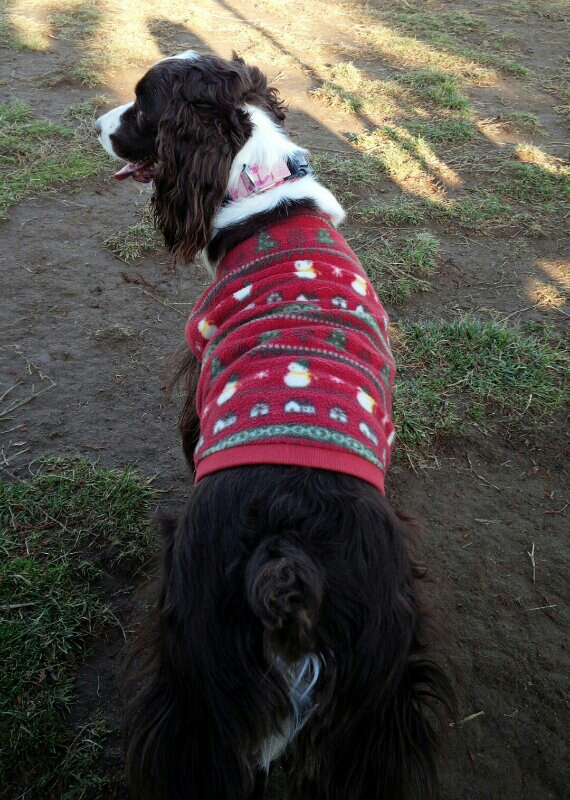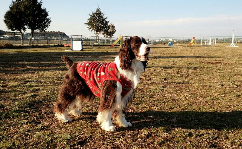 近所のポーリッシュ・ローランド・シープドッグのポコちゃんがピチピチで着れなかった真っ赤なフリースをもらっちゃいました。