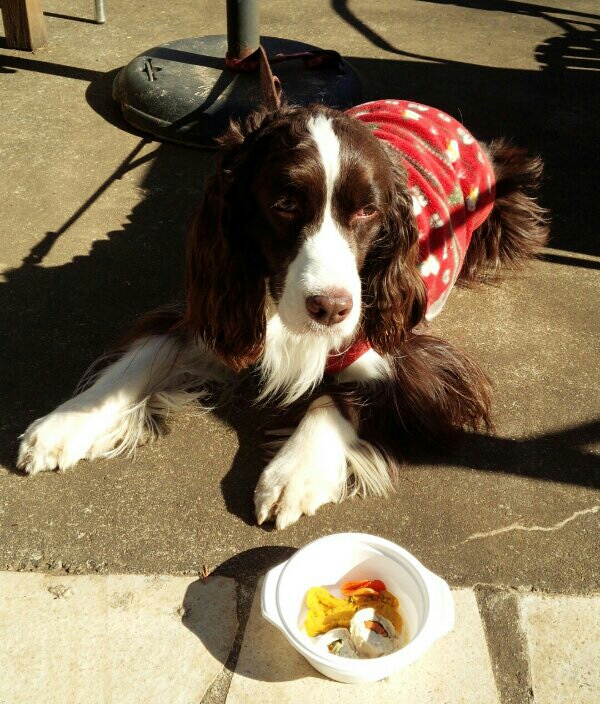 食べ物を見せられているのに許可が下りない場合は、自ら要求フセをします(^^;)