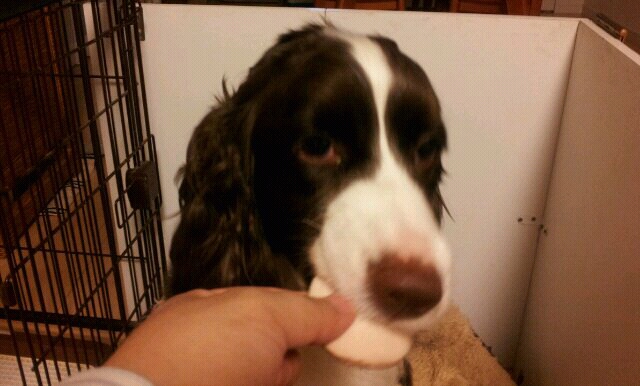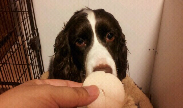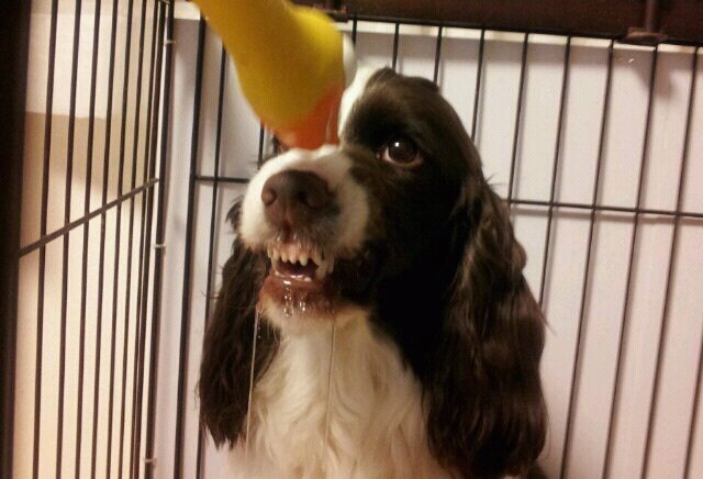 ずっとくわえたままだから、ヨダレがすごいことに…。