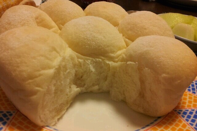 じゃあ、落ち着いたところで今日のパン(ちぎり白パン)をどうぞ。