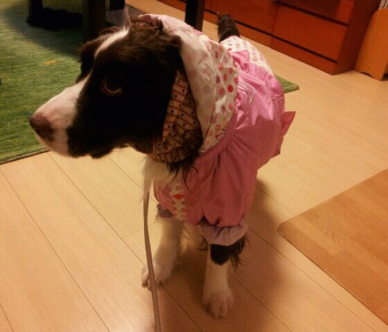 寒いので服を着せました(^^)