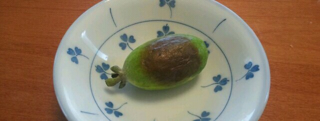 食べ時が難しくて、前に無理矢理引きちぎった実は、表面は柔らかくなっていたけど、中は硬く、酸っぱくて食べれたもんじゃなかった(T-T)
