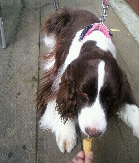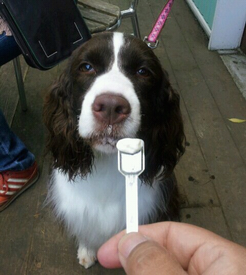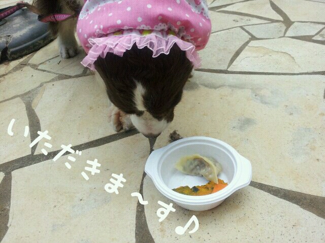 外に出掛けるとご馳走にありつけると思い込んでいるらしく、普段のフードには全く手を着けないという徹底ぶり(^^;)
