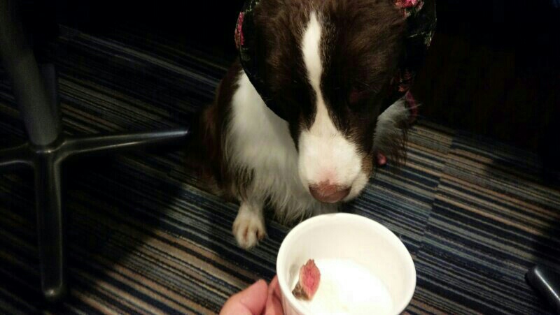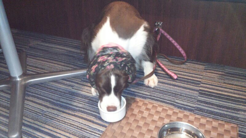 犬用メニューは予約限定だそうで、アシュリーはご馳走にありつけず…(T^T)