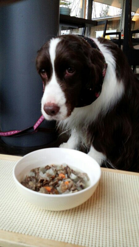 私たちの夕食は牛しゃぶなので、アシュリーには「牛すじと根菜のことこと煮込み」を選択