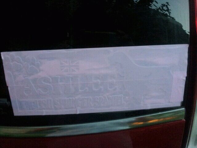 前に作ったステッカーは、プリンターで印刷して上からフィルムを貼るタイプだったので、車に貼ると、日光で黒色が色褪せ、更に周りから雨水が染みて滲んでしまった。