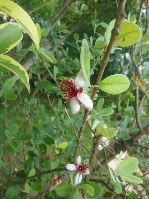 庭のフェイジョアの実が膨らんできました(^-^)