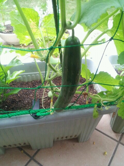 アシュリーに葉っぱをかじられた胡瓜は、明日には食べられそうなぐらい急成長!!