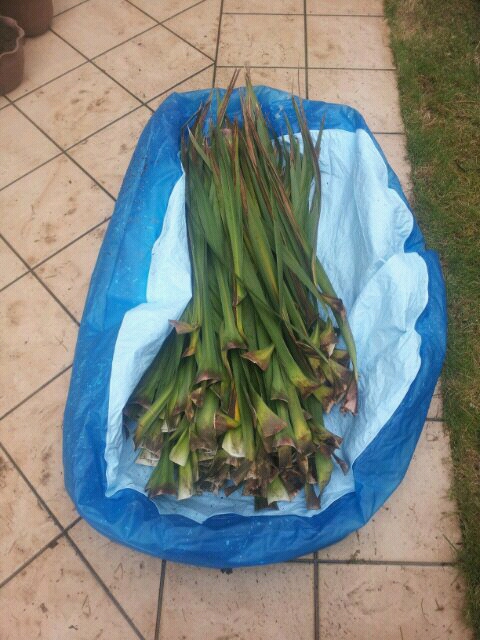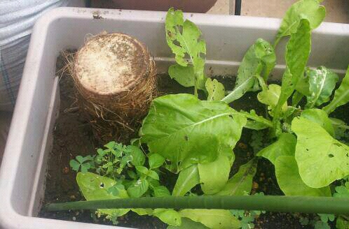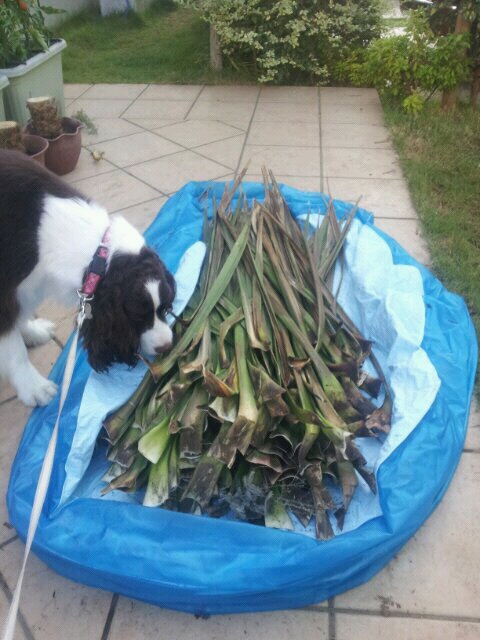 それから、むしった葉っぱも勿体ないので、とりあえず置いてます。