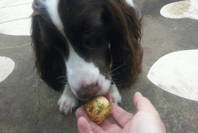 残さず食べましたが、一回地面に落としてから食べるので、汚いですね。熱くはないけど、食べにくいのかな?