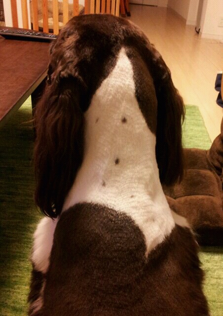 バリカンは背中から首に向かって入れたみたいね。