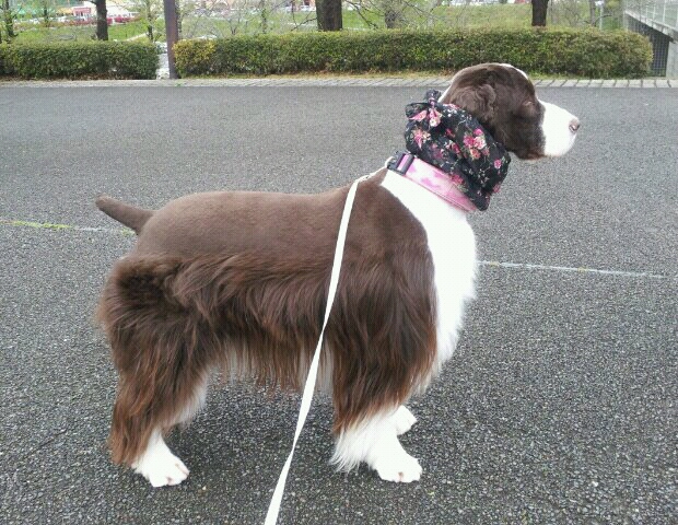 飾り毛のボリュームが抑えられておらず、背中の刈った部分との境目が地面と平行にクッキリ。