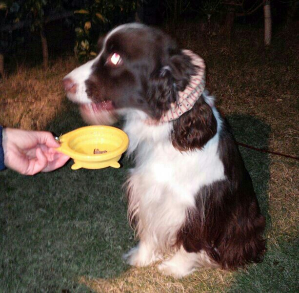 食べ物を見せられているのに許可が下りない場合は、自ら要求フセをします(^^;)