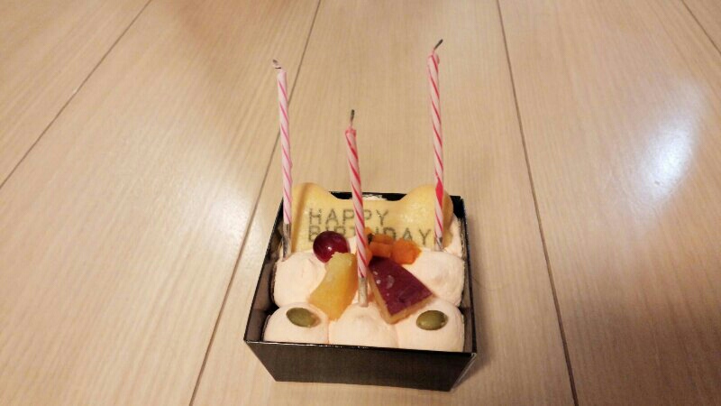 朝から自宅でカット、ドッグランでシャンプーしたあと、イオンでケーキを買ってきました